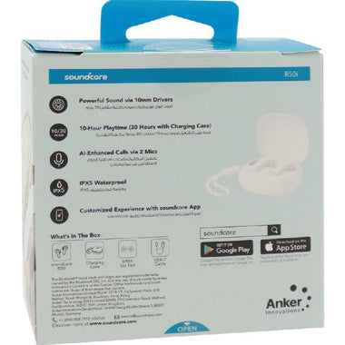 Experience powerful bass, long battery life, and crystal-clear calls with the Anker Soundcore R50i True Wireless Earbuds. Featuring a dynamic 10mm driver, up to 30 hours of total playtime, IPX5 water resistance, and 22 customizable EQ presets via the Soundcore app. Perfect for workouts, travel, and everyday listening with AI-enhanced dual-mic clarity.